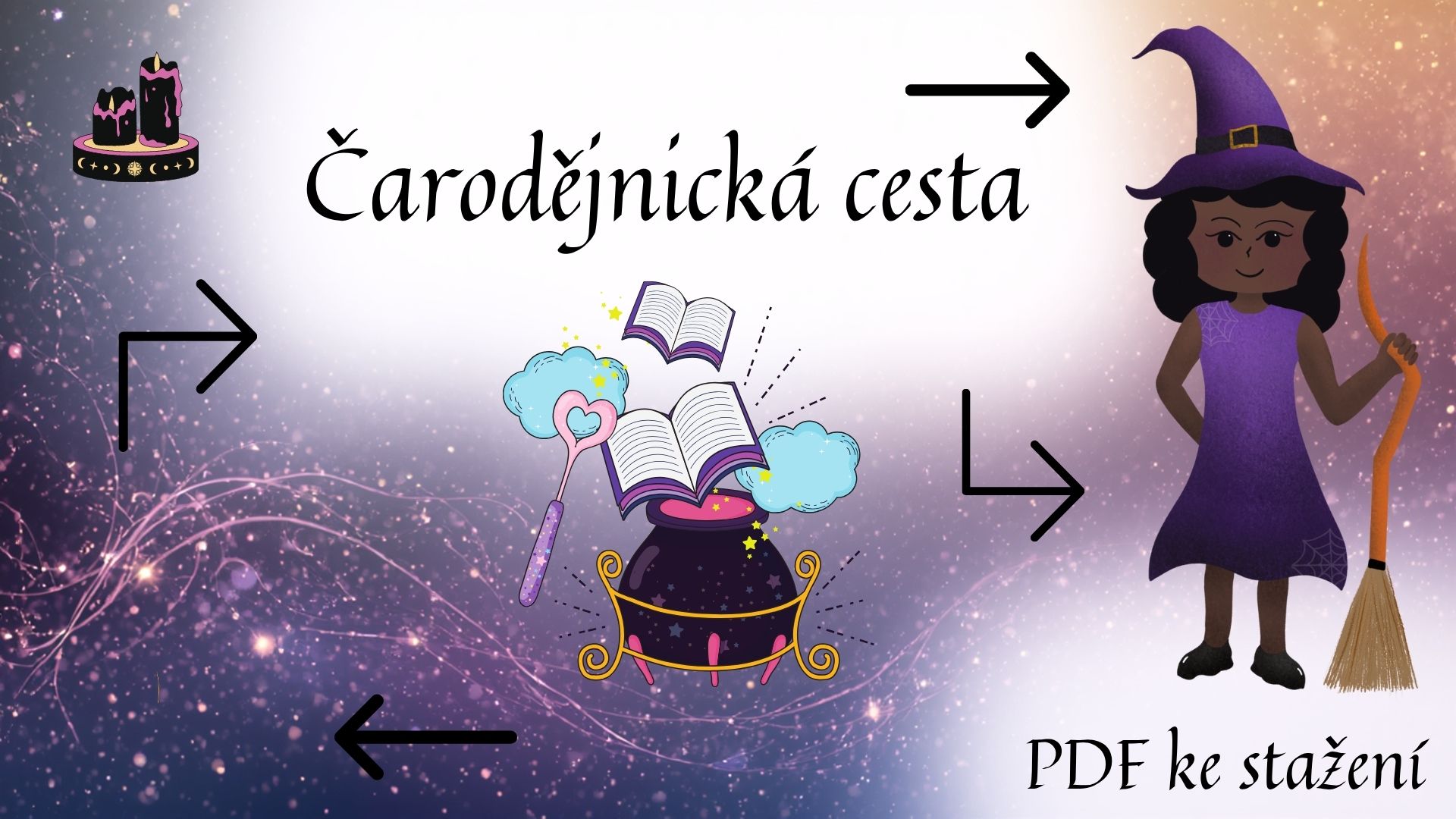 Děti vystřihnou jednotlivé šipky a pomocí nich vytvoří trasu, po které se čarodějnice dostane ke svému kotlíku na lektvary. Správným nalepením šipek na prázdná políčka vytvoří cestu od čarodějnice až k cíli. Skvělá aktivita nejen na Čarodějnice, ale kdykoliv během roku!